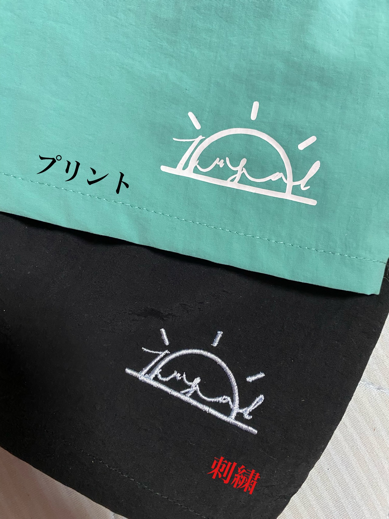 プリント部分は色落ちする可能性がございます。個別で裏返し、